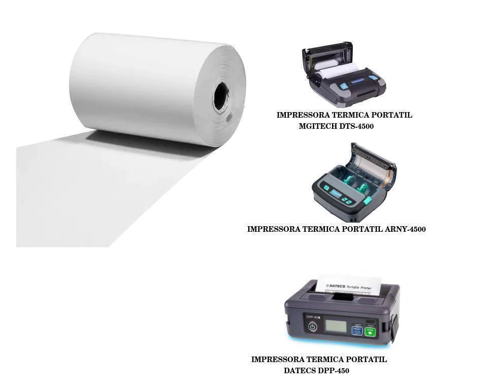 100% compatível com equipamentos que tenham impressoras térmicas até 111mm de largura (+ ou - 11 centímetros, 4 polegadas)
