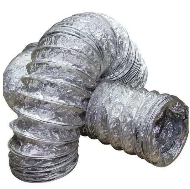 Duto fabricado com uma dupla parede de alumínio, poliéster e espiral de arame bronzeado.
